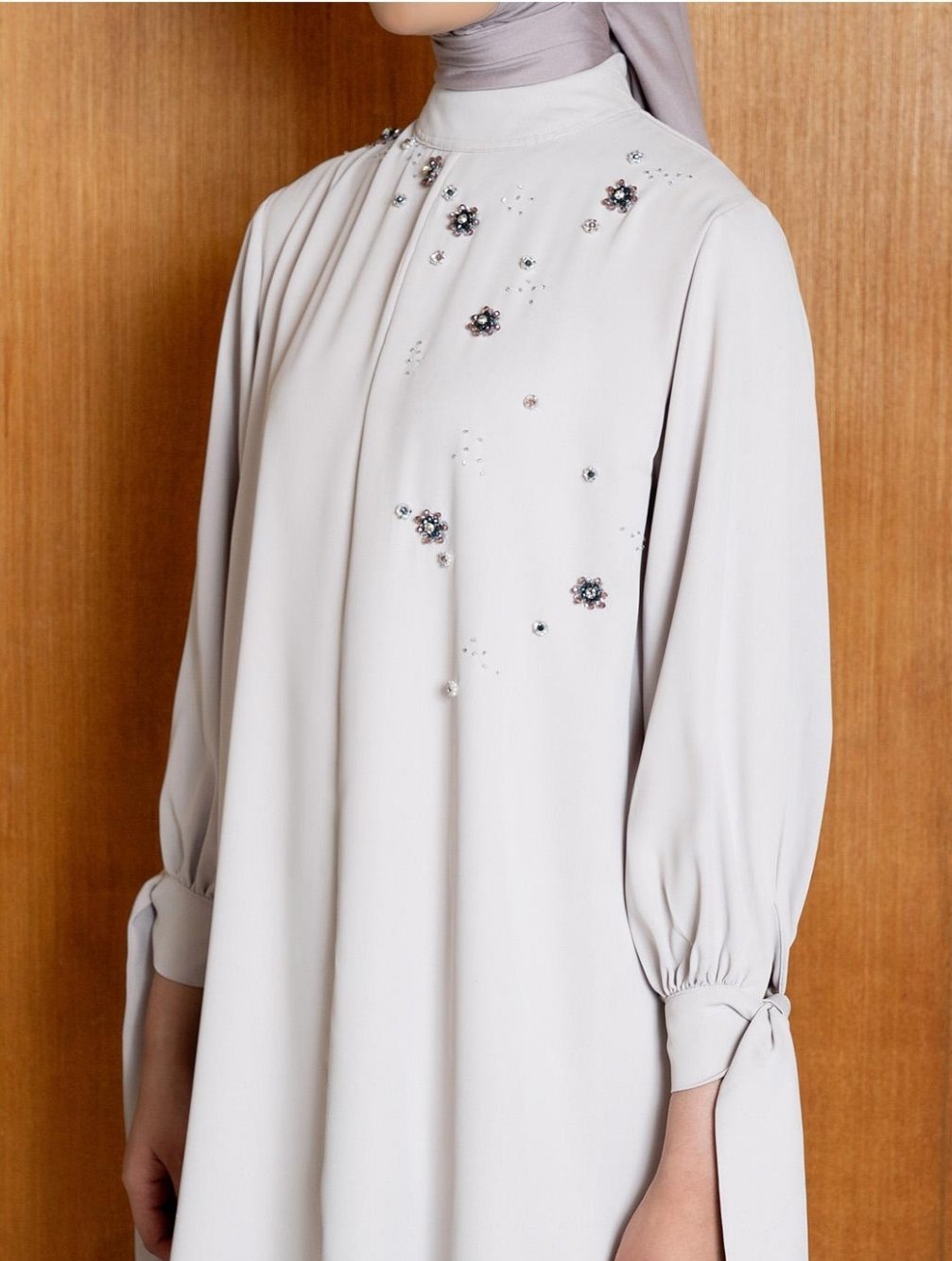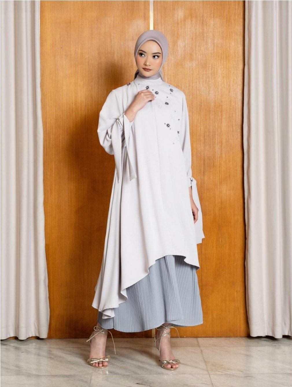 – Terdapat lengan dengan detail manset tali yang dapat diikat