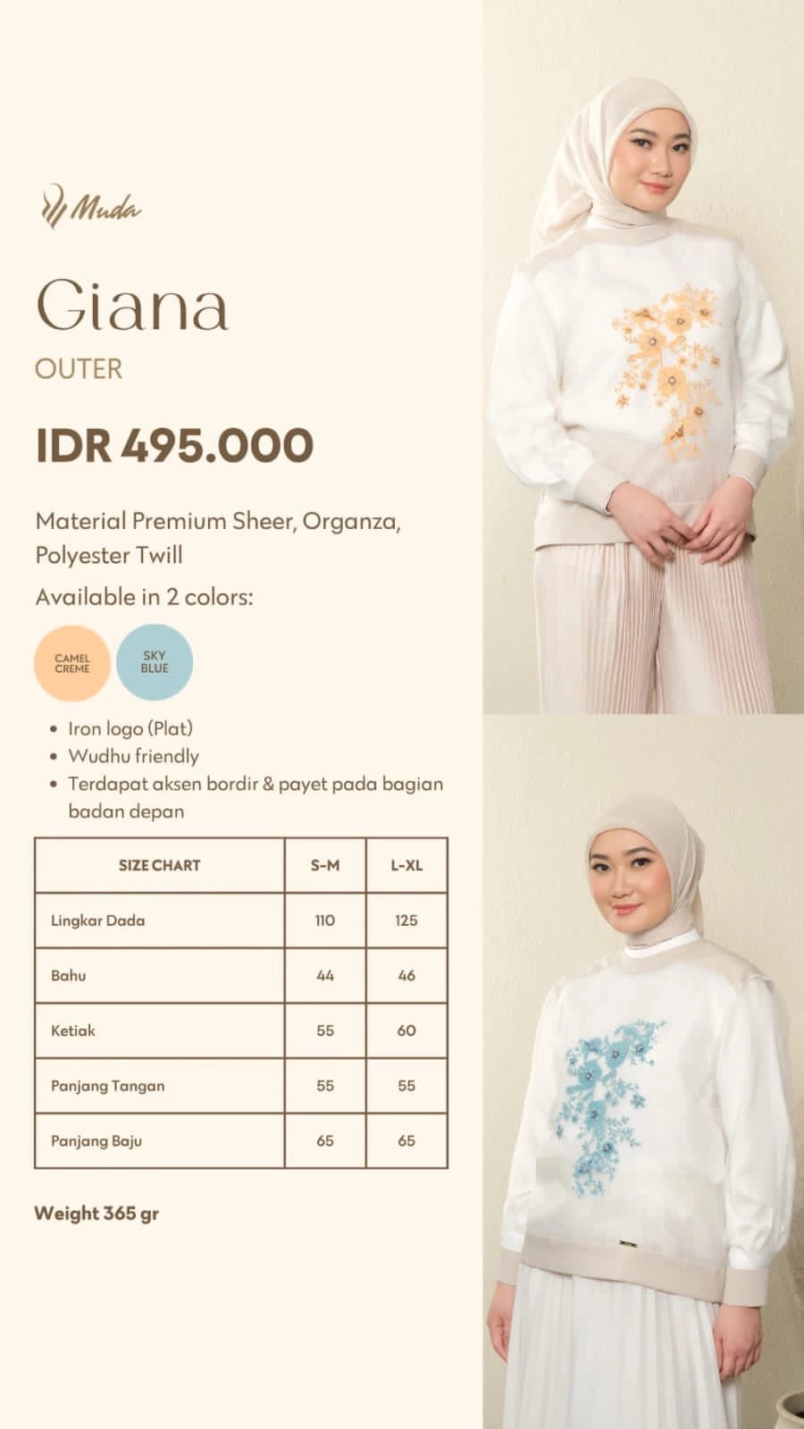 Terdapat aksen bordir & payet pada bagian badan depan