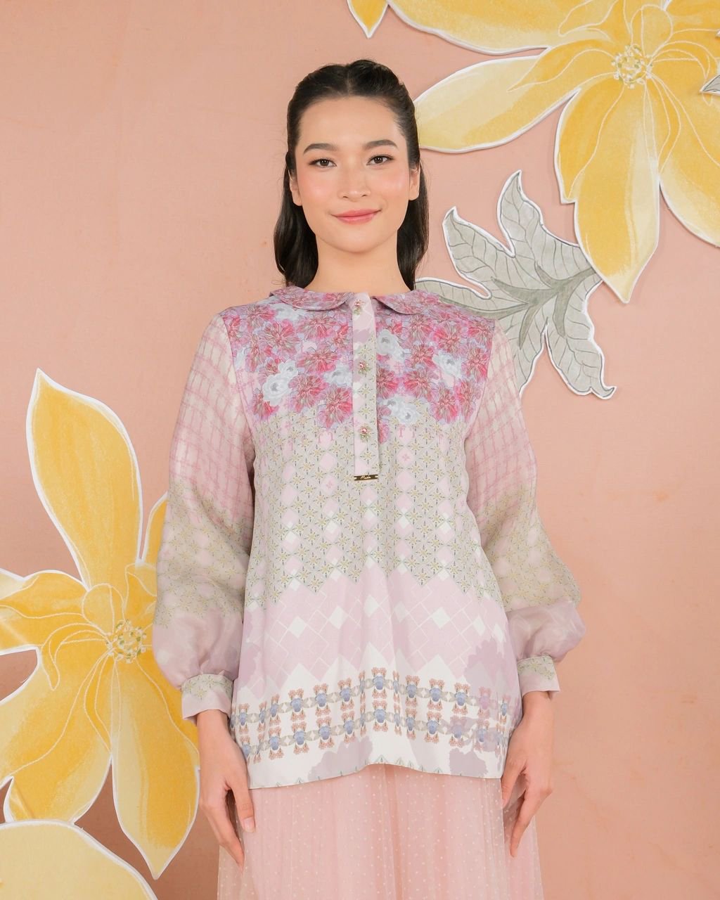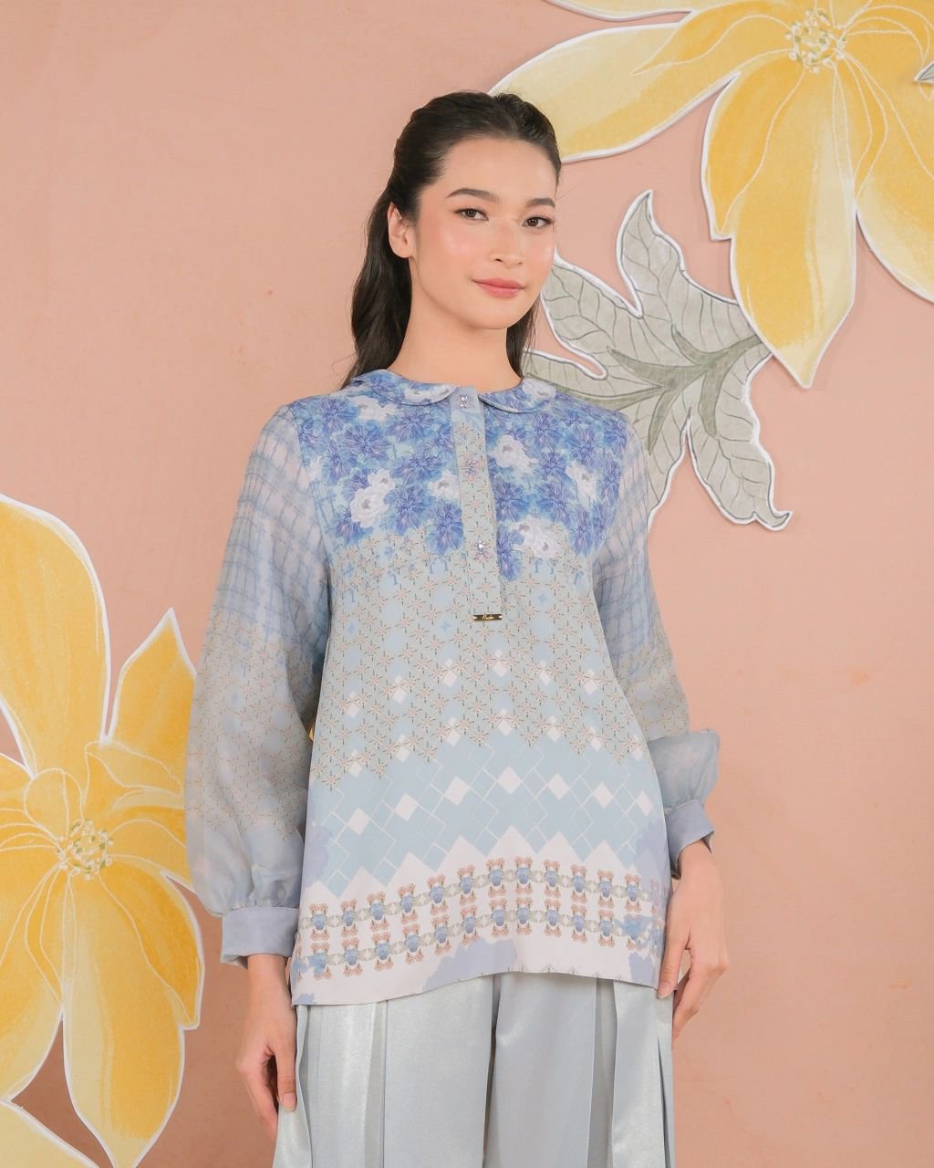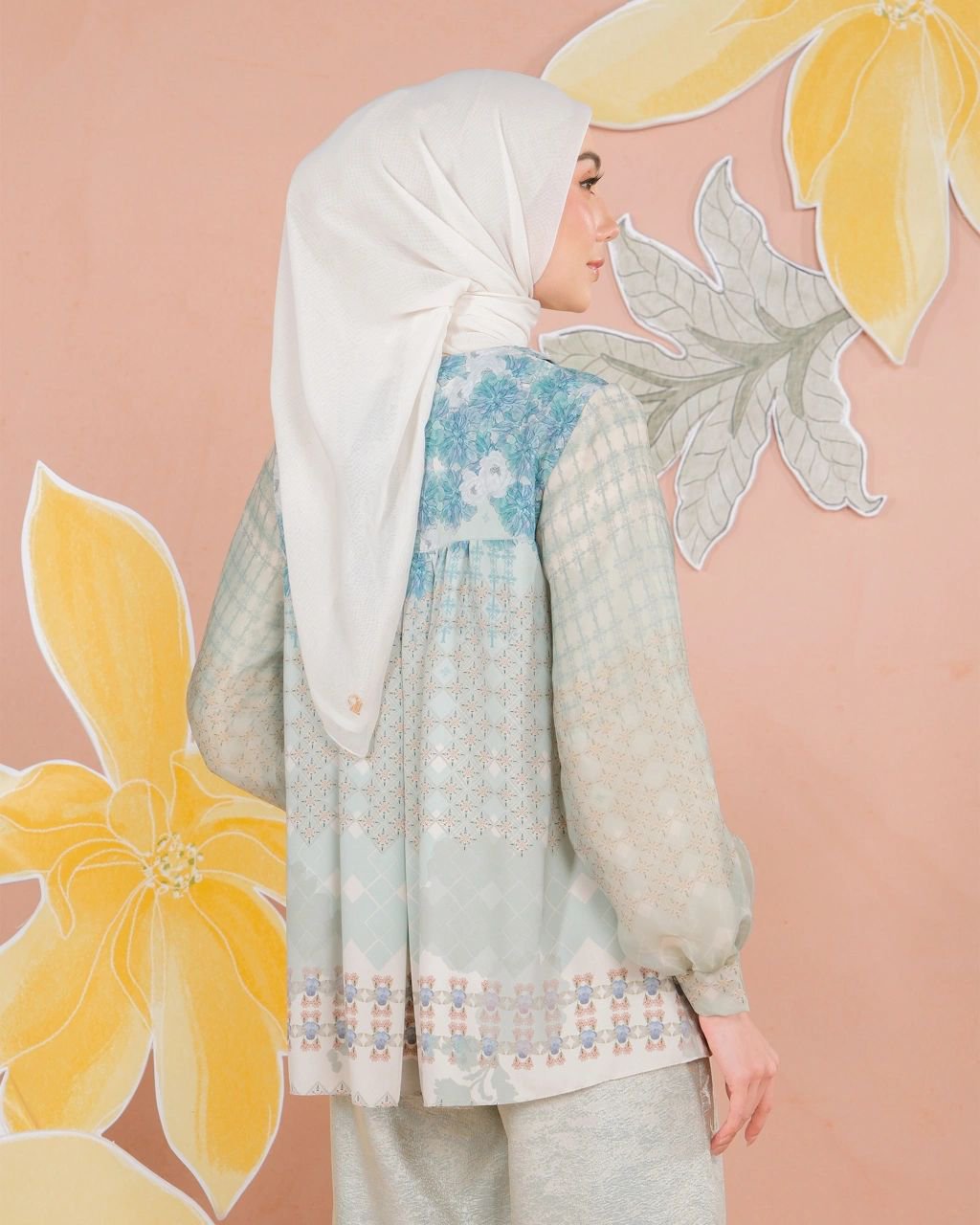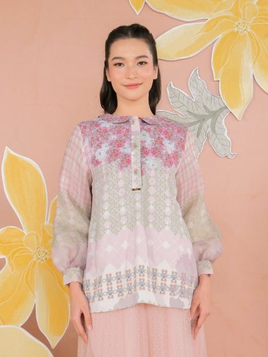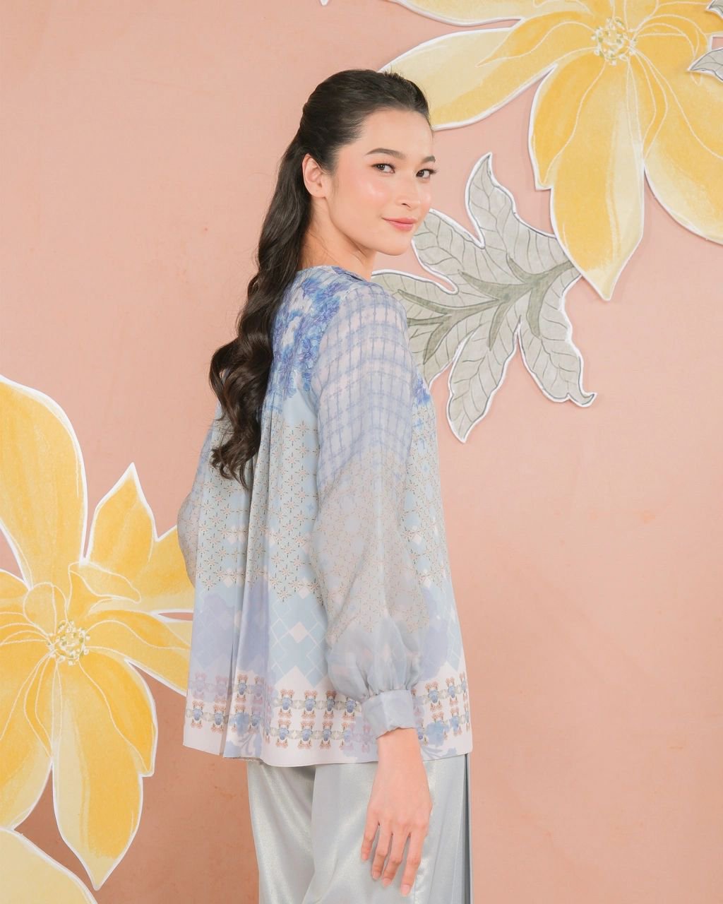 Mix fabric menggunakan organza printing pada lengan dengan furing
