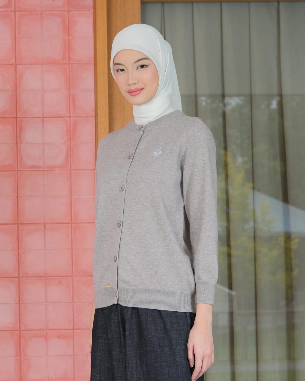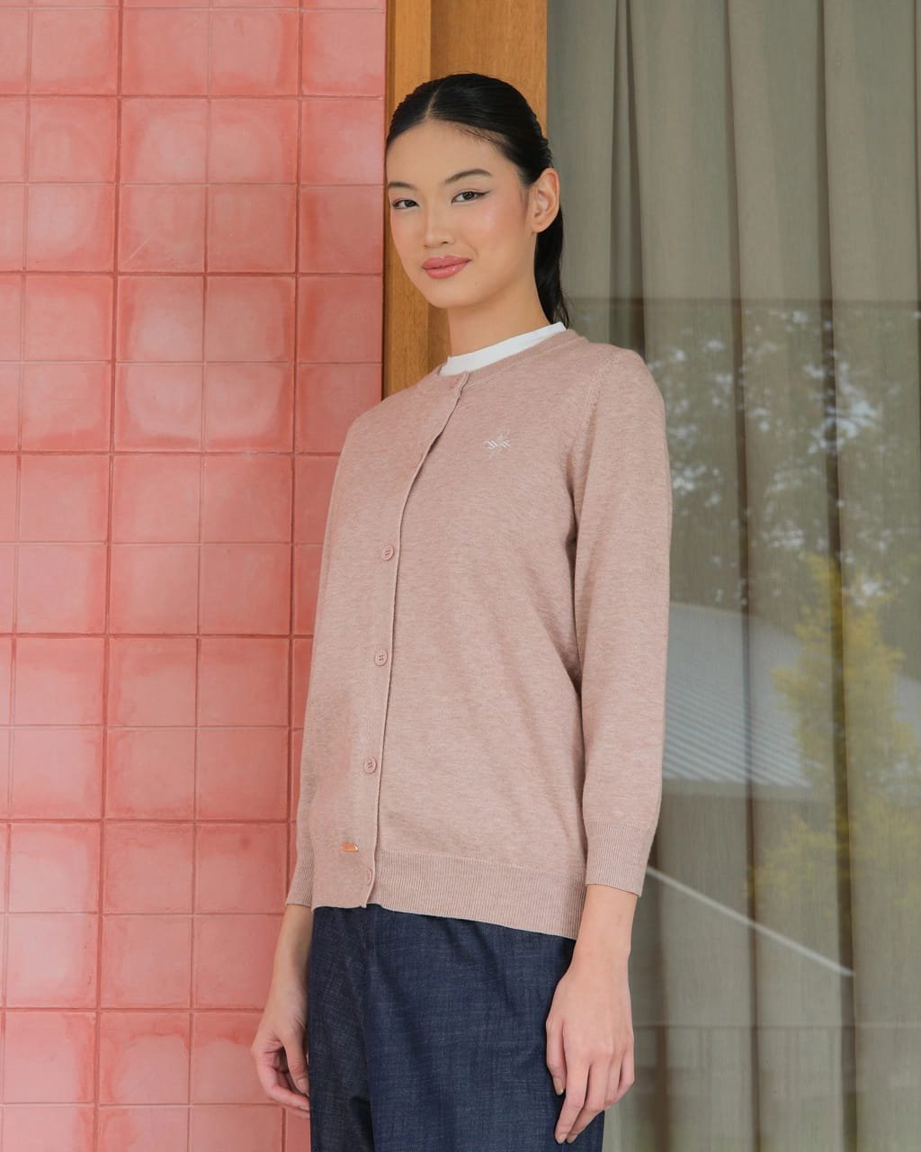 Terdapat detail bordir monogram dibagian kiri badan depan